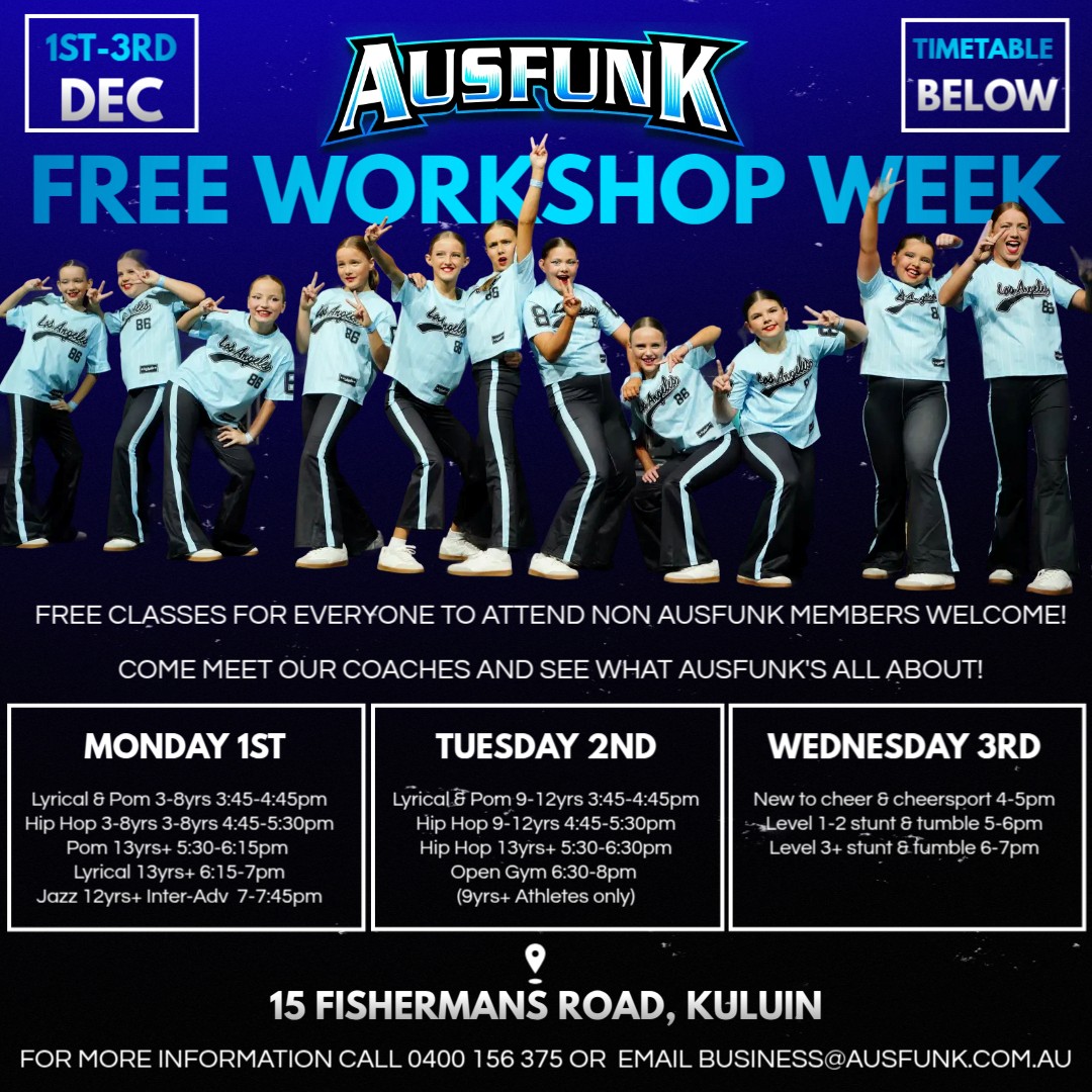 Ausfunk Cheer & Dance - Kuluin 4/13-15 Fishermans Rd, KuluinStudio closed while teams compete competition.